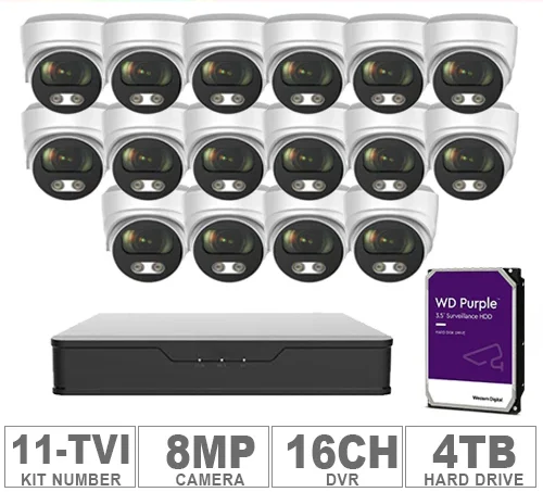 16-CAMERAS 4K/8MP Color View 2.8mm Lens,120db WDR, Smart-IR. COLOR 24/7